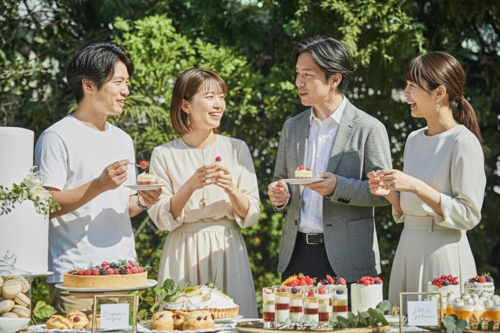 当式場では、成人式後に仲間とゆったり過ごせる特別プランをご用意。華やかな会場で料理とドリンクを楽しみながら、思い出を語り合う特別な時間をお過ごしいただけます。