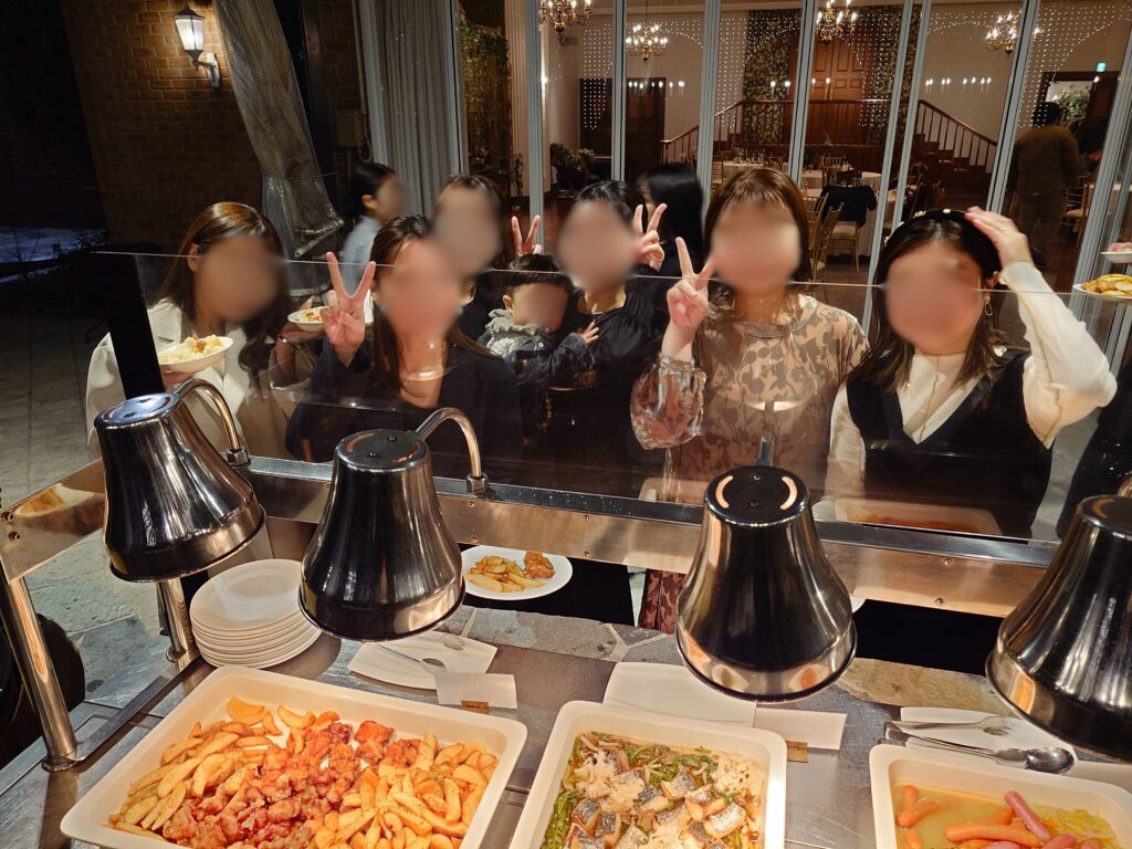 料理はブッフェ形式で用意され、それぞれが好きな料理を選びながら、立ち話をしたり席を移動したりと、自由でリラックスした時間を楽しまれていました。